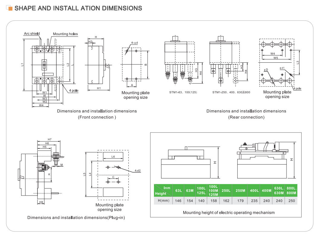 Usi: gli interruttori automatici scatolati elettrici sono ampiamente utilizzati negli impianti elettrici nei settori residenziale, commerciale, industriale e dei trasporti. In ambito residenziale viene utilizzato per proteggere la sicurezza dei circuiti domestici e delle apparecchiature elettriche; in ambito commerciale viene utilizzato per proteggere gli impianti elettrici di grandi edifici e locali commerciali; in ambito industriale viene utilizzato per controllare e proteggere il funzionamento sicuro di attrezzature e macchine di fabbrica; nel campo dei trasporti, viene utilizzato per proteggere il funzionamento stabile di semafori, segnali ferroviari e altre apparecchiature.